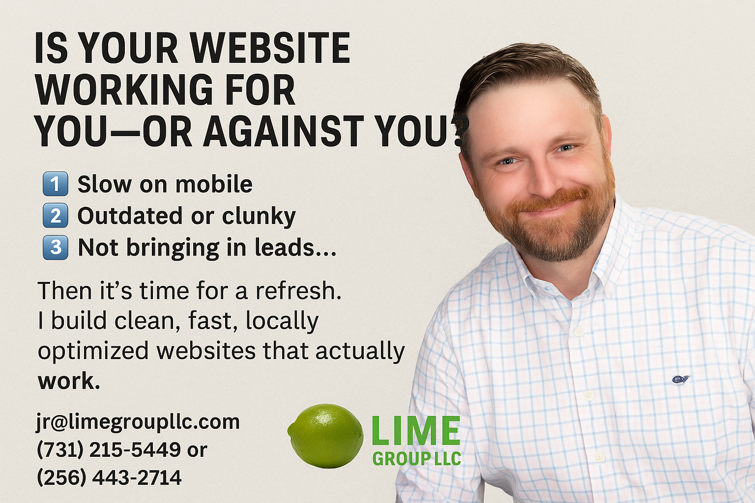 I’m Brian Williamson, the one-man studio behind Lime Group LLC. I help small businesses across Jackson, Tennessee and Florence, Alabama build clean, smart websites that do more than look good—they get results. And I do it without the bloated pricing or confusing handoffs.